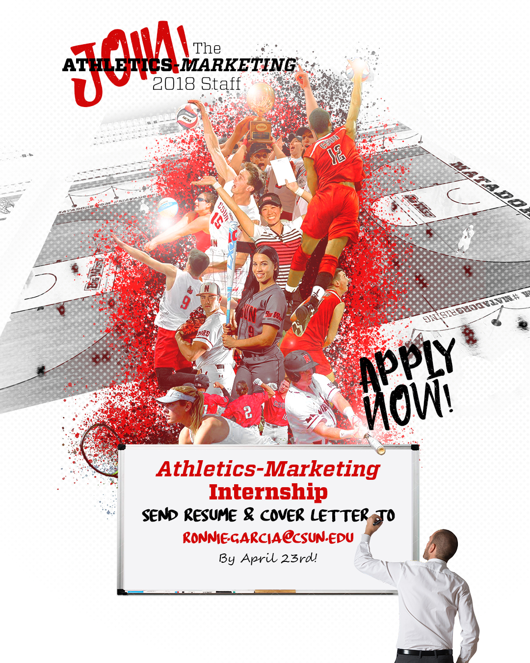 Create visual concepts, by hand or using computer software, to communicate, inspire, inform, or captivate patrons. Develop strategies to increase attendance and awareness of athletic events. Maintain and update social media page with original web graphics.